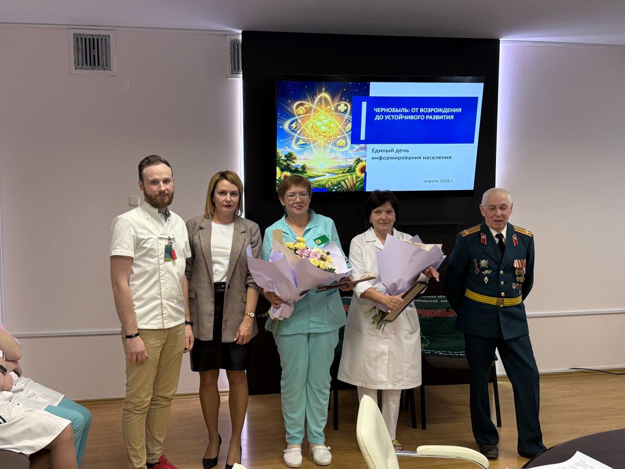 40 лет со дня катастрофы на Чернобыльской АЭС – Кузьмин Вадим Николаевич, председатель Правления отделения БРОО ЛИЧК «Ветераны Чернобыля» по Витебску и Витебской области, заместитель председателя профсоюзного комитета Сукманов Александр и коллектив диспансера, 16 апреля чествовали наших сотрудников, которые принимали участие в ликвидации последствий Чернобыльской трагедии: Шараметову Ларису Алексеевну, медицинскую сестру изотопной лаборатории и Казаченко Наталью Владимировну, медицинскую сестру;
