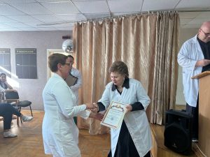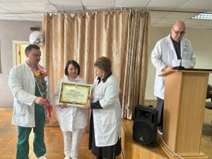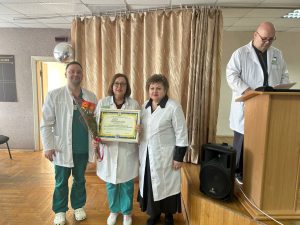 16 февраля подведены итоги работы за 2025 год. В диспансере проведена значительная работа по оказанию специализированной, консультативной медицинской помощи пациентам злокачественными новообразованиями и предопухолевыми заболеваниями. За достижение лучших показателей по оказанию квалифицированной специализированной, консультативной, лечебно-профилактической медицинской помощи, высокий профессионализм Присвоено звание: «Врач года» – врачу-анестезиологу-реаниматологу отделения анестезиологии и реанимации Антонову Юрию Анатольевичу с вручением Диплома и выплатой премии. «Медицинская сестра года» – медицинской сестре (старшей) приемного отделения Буруновой Светлане Тадеушевне с вручением Диплома и выплатой премии. «Санитарка года» — санитарке (палатной) онкологического химиотерапевтического отделения Калистратовой Жанне Николаевне с вручением Диплома и выплатой премии. «Специалист года» – заместителю главного врача по идеологической работе Угольковой Татьяне Леонидовне с вручением Диплома и выплатой премии. Присвоено звание «Отделение года»: среди лечебных отделений – отделению дневного пребывания онкологического поликлинического отделения с вручением Диплома и выплатой сотрудникам отделения премии. среди структурных подразделений – группе молекулярно-цитогенетических исследований клинико-диагностической лаборатории с вручением Диплома и выплата сотрудникам премии. За многолетний, добросовестный труд в системе здравоохранения, высокий профессионализм, значительный личный вклад в укрепление и развитие здравоохранения области награждены Почетной грамотой главного управления по здравоохранению Витебского облисполкома: Янченко Елена Валерьевна – врач-рентгенолог рентгеновского отделения; Бадюкова Татьяна Васильевна — врач ультразвуковой диагностики отделения ультразвуковой диагностики. Благодарность главного управления по здравоохранению Витебского облисполкома Терещенко Екатерине Александровне – медицинской сестре эндоскопического отделения (старшей); Поздравляем!
